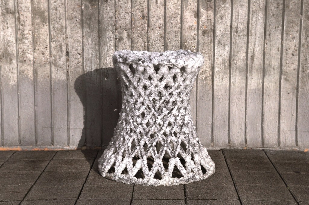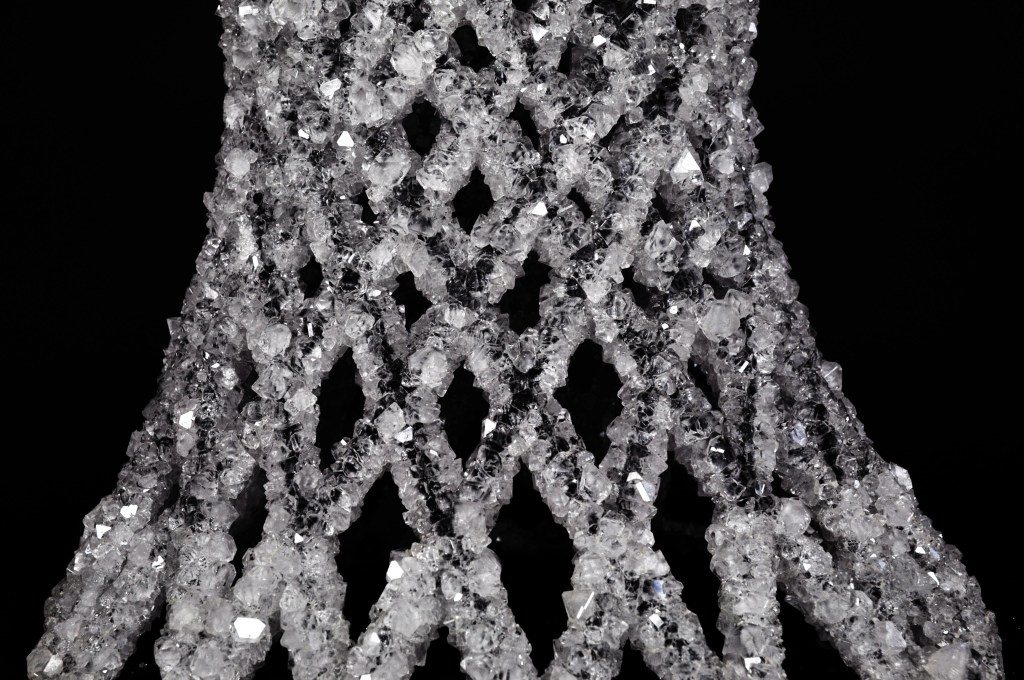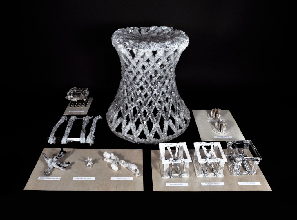The stool design maximized thread intersections to encourage crystallization, resulting in a 400mm x 500mm stool capable of supporting 85 kilograms (188 lbs). While crystallization offers robust properties and aesthetic appeal, its potential for structural and architectural use remains underexplored. Through this project, we hope to contribute to the wider investigation of crystallization as an innovative material in design and construction.
