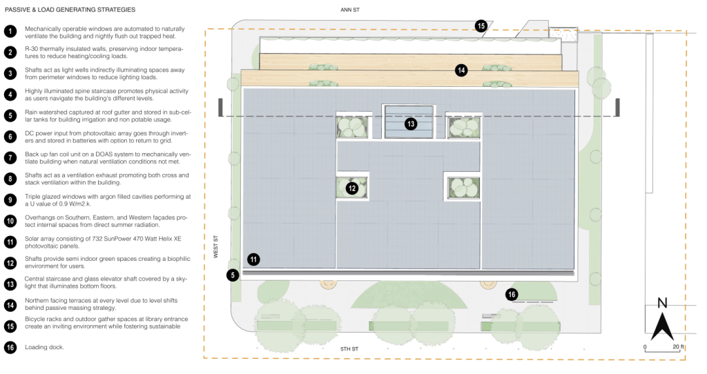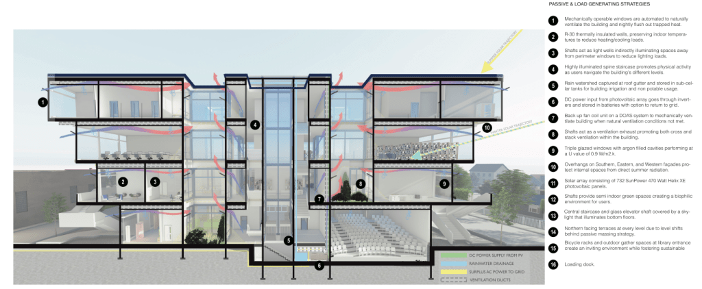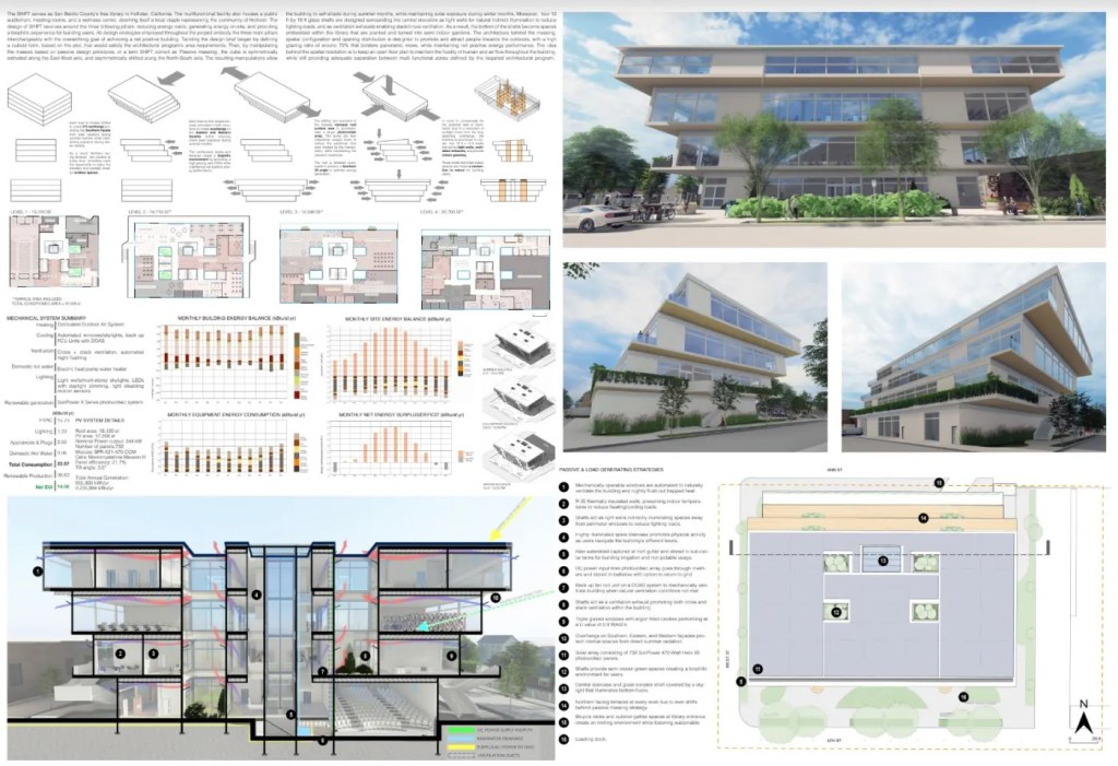 In response to the Architecture at Zero competition, an ideas competition where the main criteria is to design a building that is net-zero (produces as much energy on site that it uses), we designed a net-zero building that seamlessly integrates environmental performance with innovative form. The unorthodox shape of the structure was defined through meticulous environmental massing, optimizing solar exposure and natural ventilation. Overhangs on the south, east, and west facades were strategically designed to reduce heat gain, while terraces on the north side provide shaded outdoor spaces and enhance thermal comfort. Punctures throughout the building serve as light wells, flooding interior spaces with natural daylight while also improving cross-ventilation. This holistic approach ensures sustainability without compromising on functionality or aesthetics.